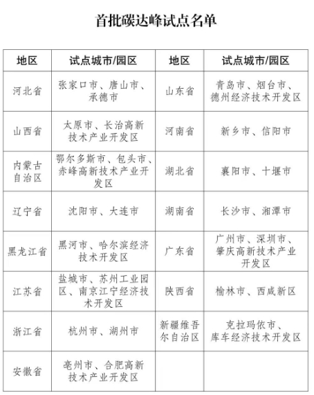 國家碳達峰試點建設方案