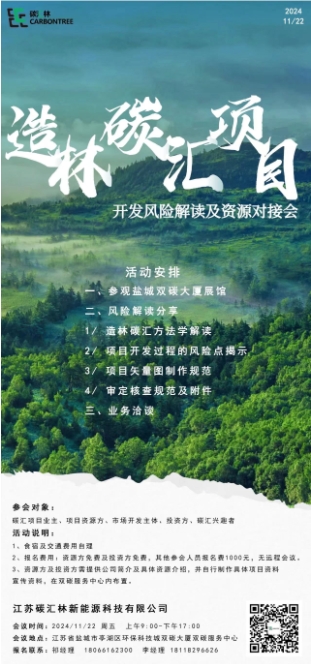 隨著CCER正式啟動,新的管理辦法對減排項目合規(guī)性要求有較大提升,促使很多項目業(yè)主和地方各級政府部門開始冷靜思考方法學(xué)下合規(guī)減排項目如何實施的問題。近期國內(nèi)各地項目業(yè)主和項目資源方都在向碳匯林公司咨詢碳匯項目開發(fā)合作事宜,但是由于大部分項目業(yè)主和項目資源對減排項目的內(nèi)在機理缺乏基礎(chǔ)認(rèn)知,為提高對CCER項目的認(rèn)識,促進(jìn)減排項目規(guī)范運行和規(guī)范監(jiān)測,本網(wǎng)于11月22日全天在江蘇鹽城雙碳服務(wù)中心舉辦造林碳匯項目開發(fā)風(fēng)險解讀及資源對接會。